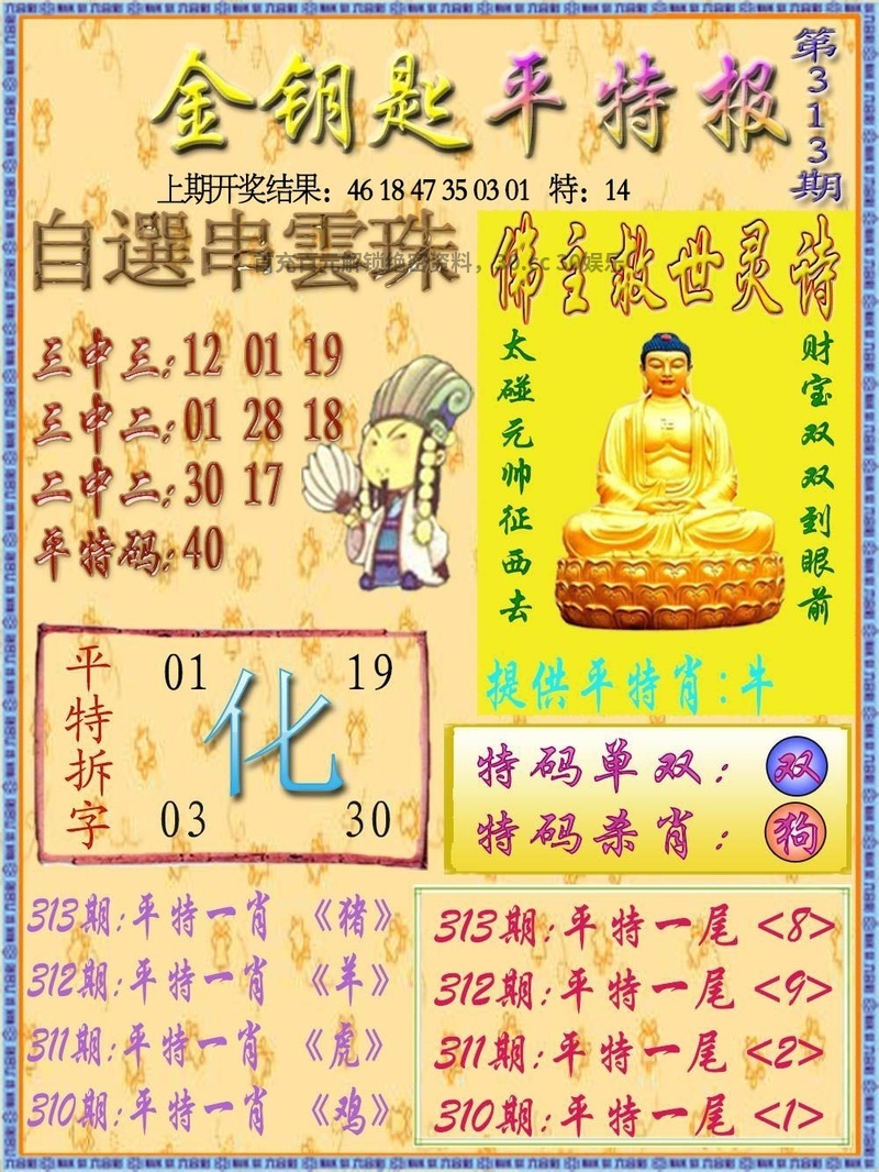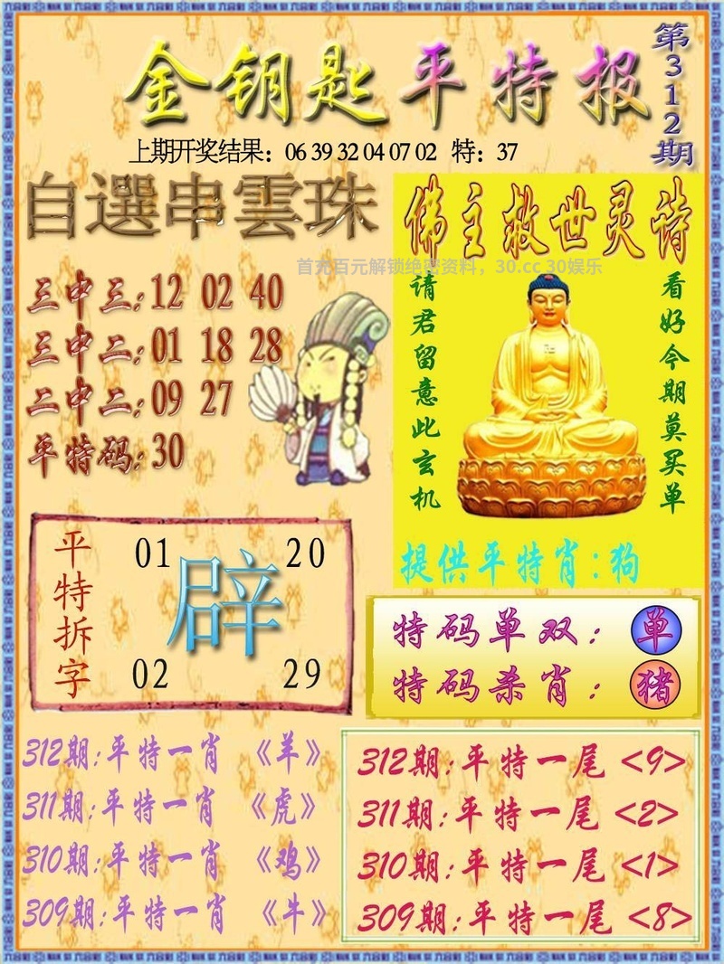 309期一字記曰:【睇】 机关算尽,坚决一心,揾食就要动脑筋 奇谋法宝,解数浑身,聪明自可睇得真 《榜》 解:揾食就要动脑筋解鼠猴蛇猪狗兔 综合取肖:鼠猴蛇猪狗兔 |